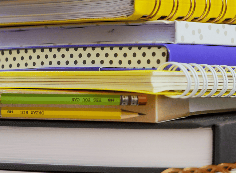 Cadernos, apostilas e livros escolares